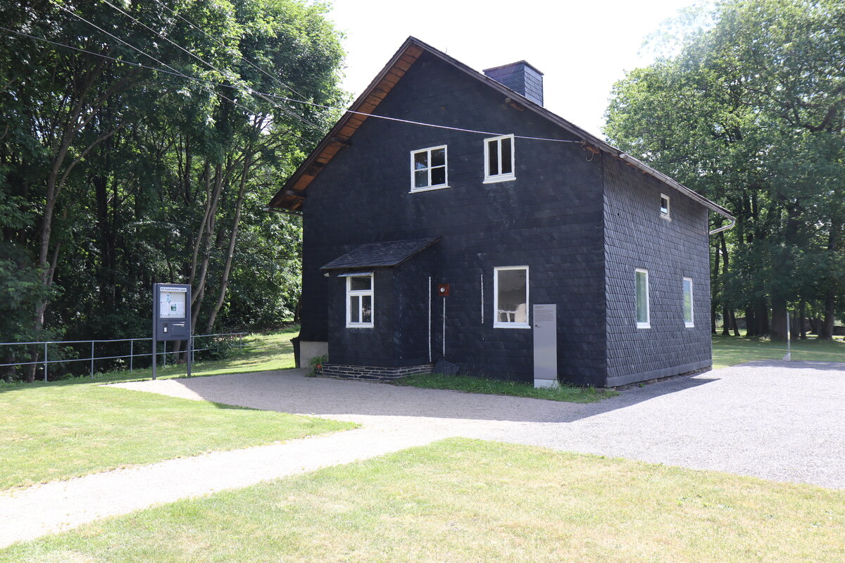 Während der KZ‐Zeit wurde eine alte Feldscheune zur Häftlingsküche umgebaut. Eine auffallend große Esse zeugt noch heute von der Nutzung. In der Nachkriegszeit bis in die 1990er Jahre wurde das Gebäude als Wohnhaus von der Familie Ludwig genutzt. Aufgrund seiner Lage und Größe bot sich das Gebäude als Besucherinformation und Gedenkstättenbüro an.