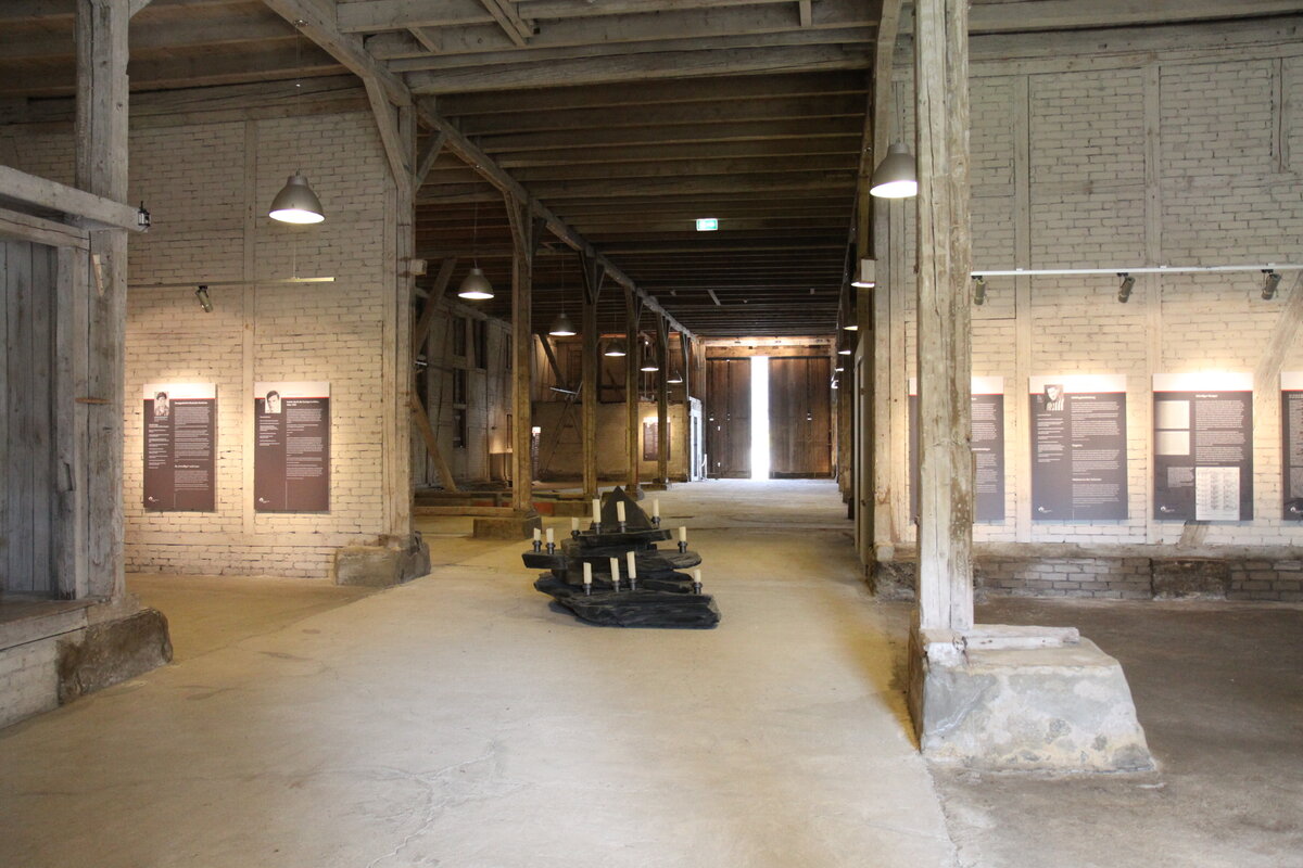 Die große Scheune als ehemalige Hauptunterkunft für Häftlinge ist der wichtigste Bestandteil der Gedenkstätte. 1979 wurde in einem Drittel der Scheune die Gedenkstätte eingerichtet, der übrige Teil wurde weiter landwirtschaftlich genutzt. Ziel der Neukonzeption war, diesen Teil für Besucher zugänglich zu machen. So wurde die Trennmauer zwischen Gedenkstätten- und Scheunenbereich entfernt, um das Gebäude wieder als Ganzes wirken zu lassen.